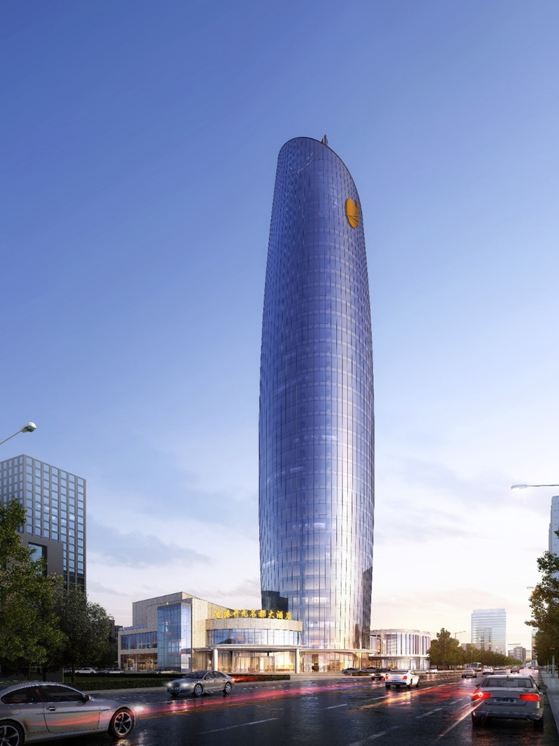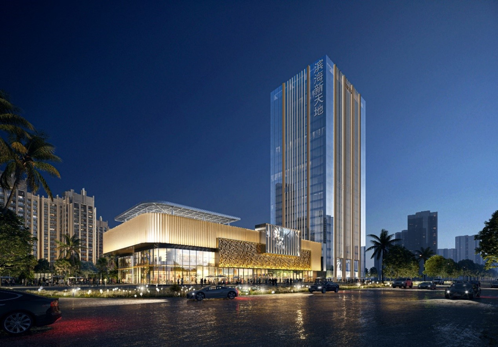 中國電建大灣區科創中心基地位于廣東省廣州市花都區,是由中電建(廣州)城市投資發展有限公司投資開發建設。該項目幕墻形式主要包括玻璃幕墻、鋁板幕墻等,總建筑面積約為62000平方米,幕墻面積38000平方米,建筑高度為162 1米。該項目是一棟超高層辦公樓,建成后將打造成為具備總部基地的地標性建筑。海口濱海新天地商業綜合體 位于海南省??谑校怯?